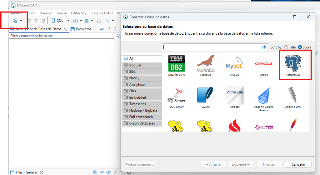 Ahora vamos a configurar la conexión entre DBeaver y nuestra base de datos PostgreSQL.